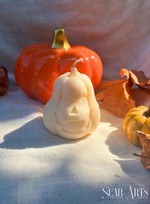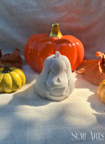 Offrez-vous une ambiance chaleureuse et éco-responsable grâce à notre bougie en cire de soja en forme de citrouille fantomatique. Sa combustion lente et propre parfumera délicatement votre intérieur.