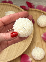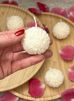 Amenez une ambiance florale chez vous avec notre Bougie Boule de Roses. Fabriquée à partir de cire de soja, cette bougie printanière procure un doux parfum, ou peut être non parfumée selon vos préférences. Avec des dimensions d'environ 4 cm de hauteur et 4,5 cm de diamètre environ, elle apporte une touche délicate à n'importe quel espace. Savourez l'élégance et le parfum subtil de nos Bougie Boule de Roses.