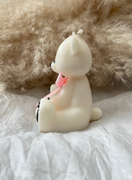 La bougie ours Teddy en cire de soja apportera douceur et chaleur à la naissance de votre enfant. Personnalisable, elle est disponible en plusieurs couleurs. Avec ses dimensions de 9 cm sur 9 cm, elle est idéale pour décorer la chambre de votre bébé. Prenez soin de l'allumer sur une surface plane et stable, et profitez d'une flamme sans fumée grâce à la mèche coupée à chaque utilisation. Éloignez-la de la lumière directe et des sources de chaleur pour éviter la décoloration. Contactez-nous pour toute personnalisation supplémentaire.